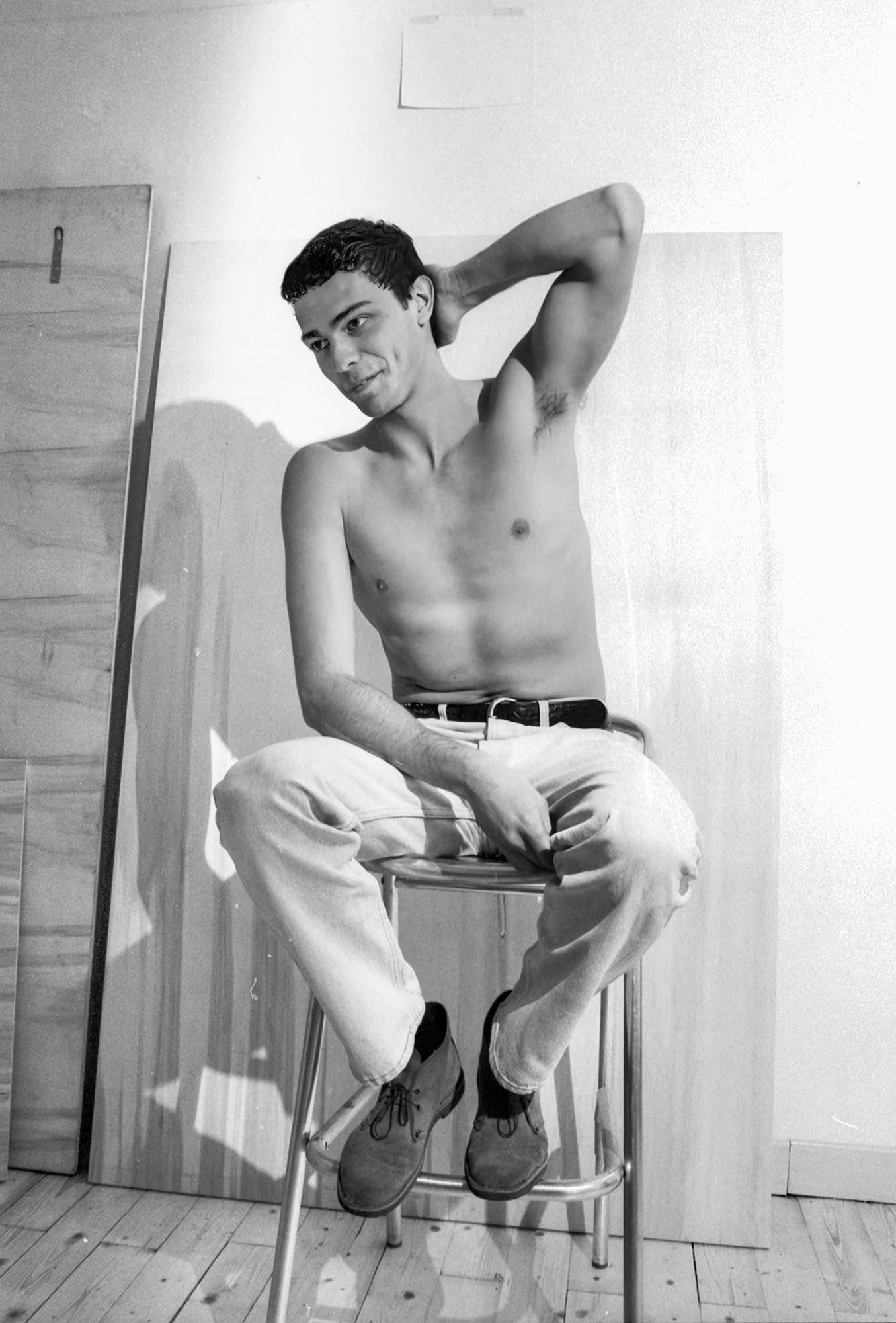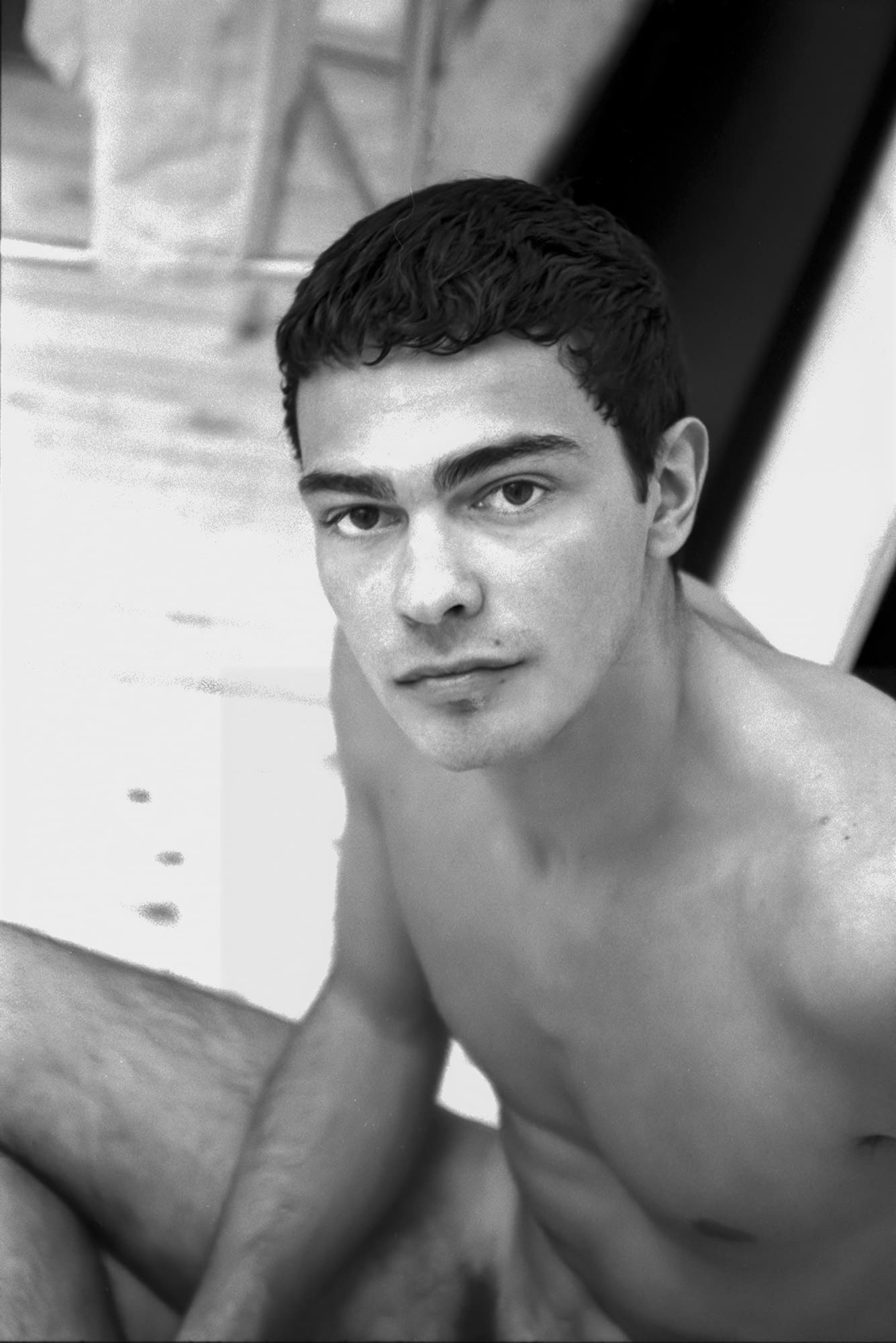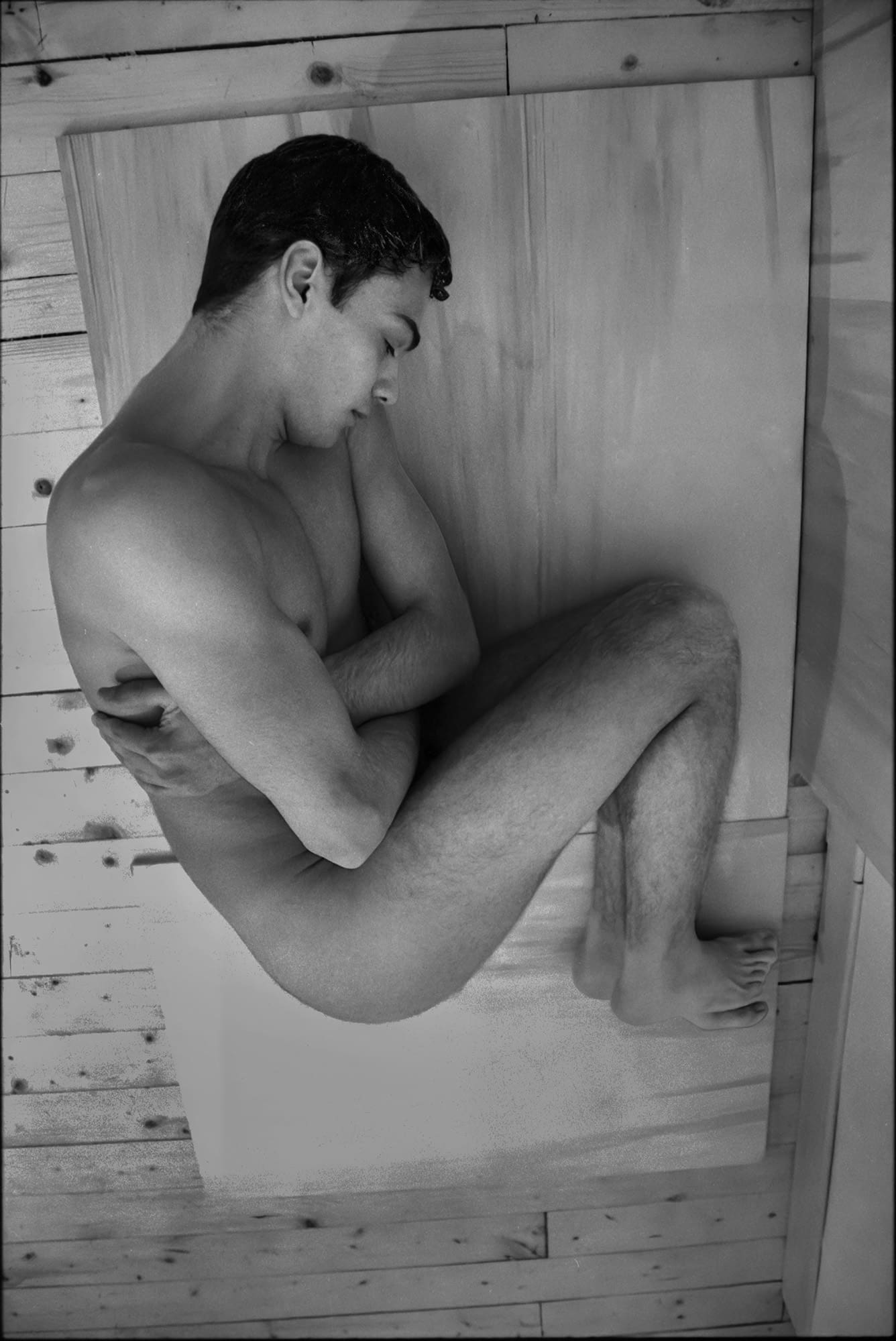 He didn’t fit at all. I was curious. I bought him a drink and asked if he’d be willing to pose for me. He said yes, so we arranged to meet the following day. He lived in a town in the provinces, a couple of hours away, and asked if he could arrive late morning. That’s what we did. I found these negatives after nearly forty years. I had no memory of taking them.