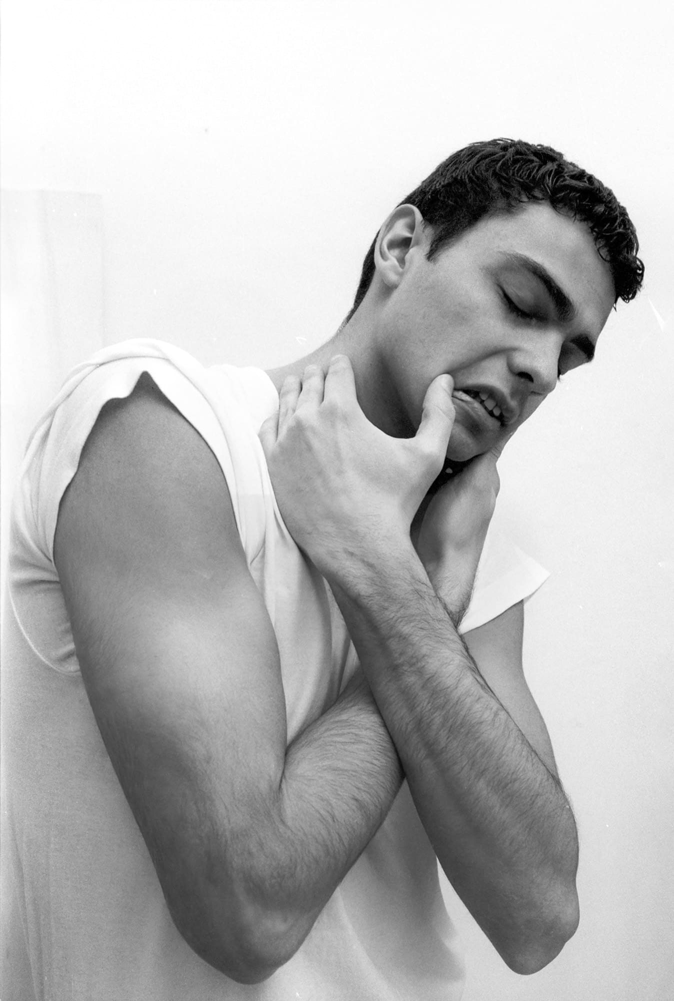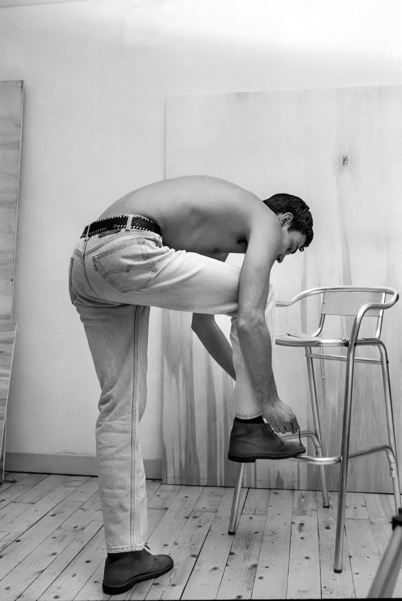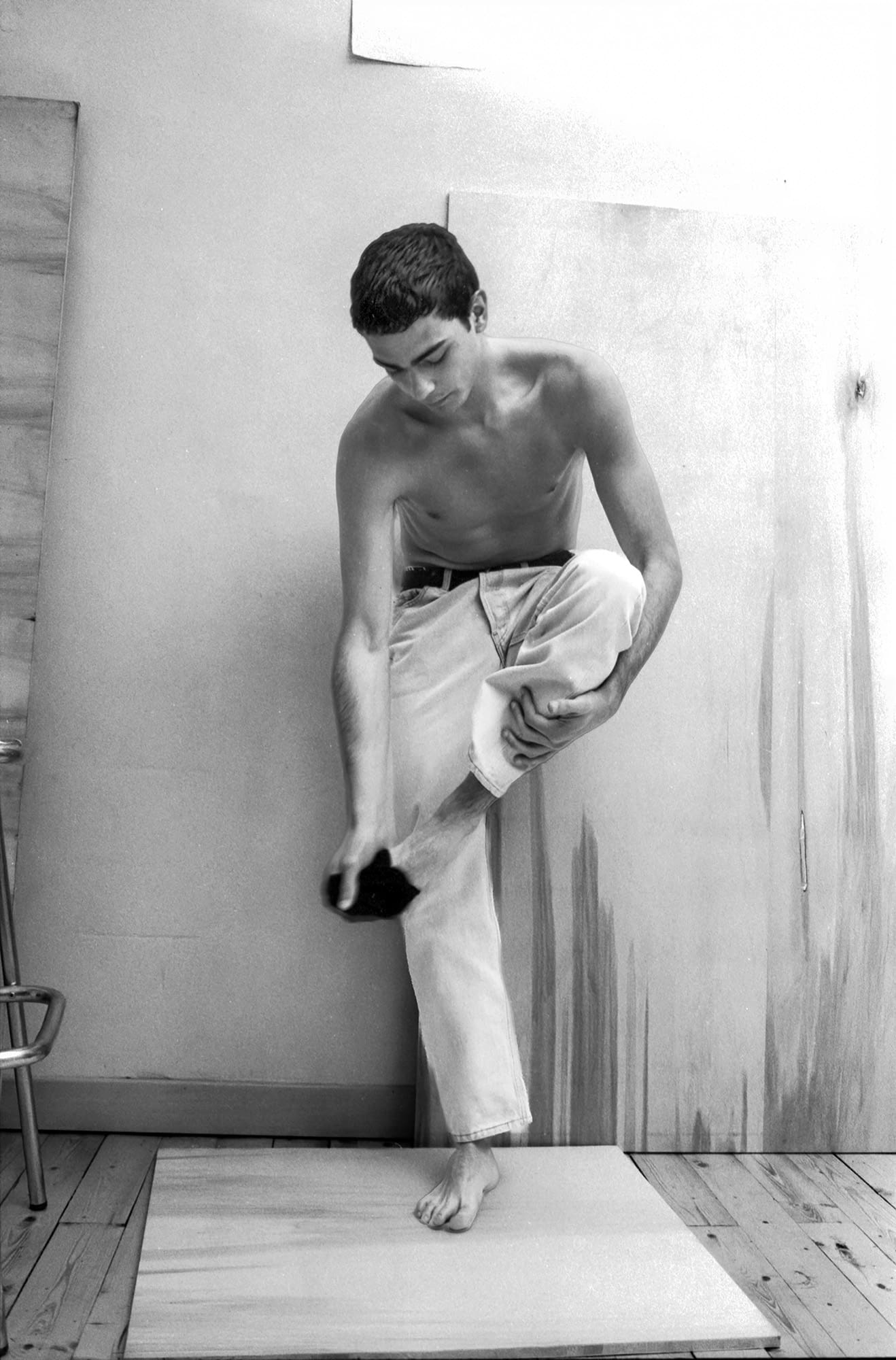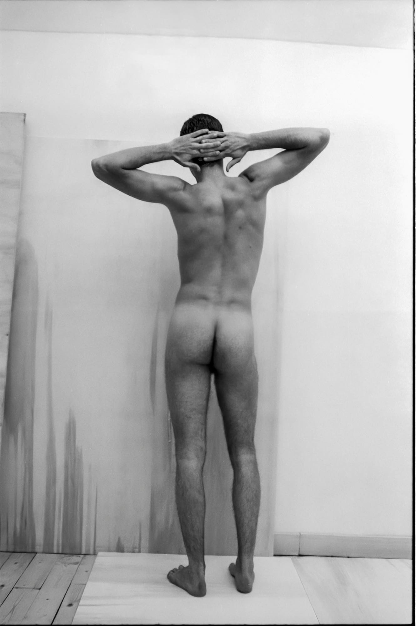 He didn’t fit at all. I was curious. I bought him a drink and asked if he’d be willing to pose for me. He said yes, so we arranged to meet the following day. He lived in a town in the provinces, a couple of hours away, and asked if he could arrive late morning. That’s what we did. I found these negatives after nearly forty years. I had no memory of taking them.